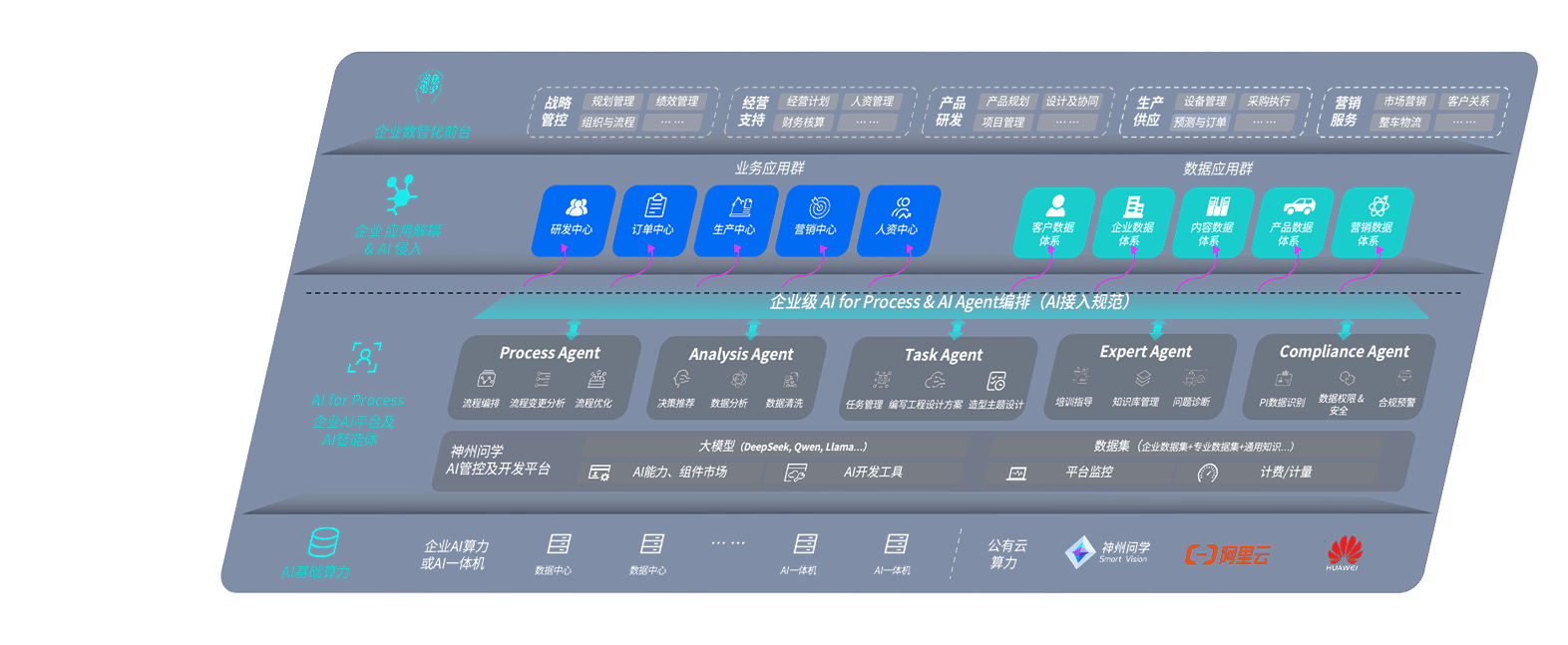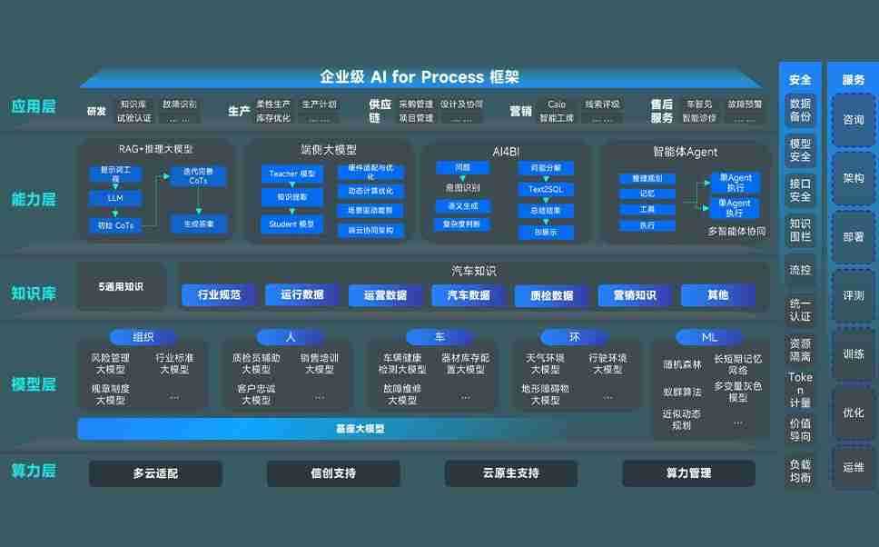 端到端的一站式AI工作空间深度融合了从企业战略规划到日常经营的全流程业务板块,,定向解决车企内部领域多、、、部门多、、、、链条长、、、场景碎片化等难题,,,,支持车企快速构建以AI为核心的生产力写作体系,,,实现任务执行与AI能力的无缝集成与交互